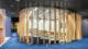 The heart of this project is a spectacular 32-meter-long projection system over a curved wall, which is achieved by means of 8 fully synchronized image-blending projectors forming a single framed image. This majestic projection is located in front of the auditoriums, allowing SAS to receive its clients arriving for conferences or presentations in a surprising and spectacular way.
