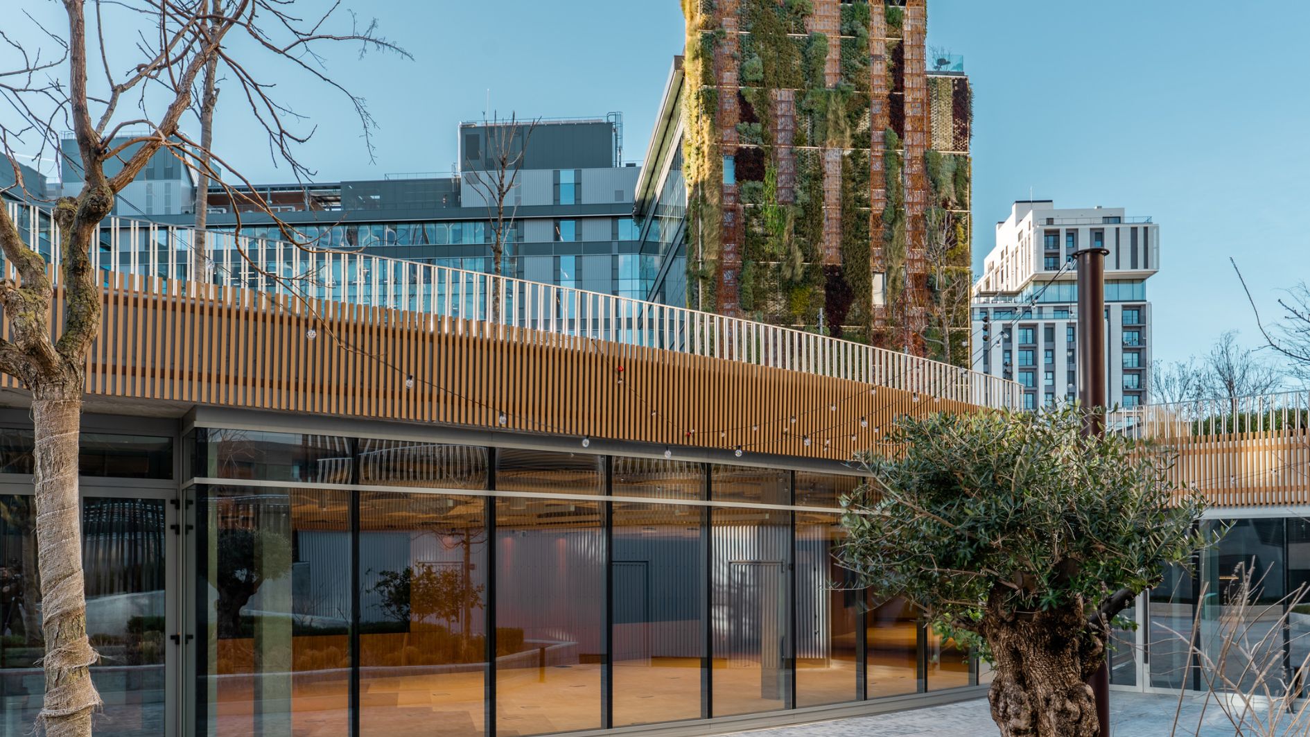 Among them, the first floor of the main building stands out as a meeting place for all residents of the complex, offering a dining and leisure area, along with the Sala de Oriente (Oriental Room). Furthermore, on the ground floor of the Boreal Building, the Sala Boreal is a multipurpose space ideal for corporate presentations and events with employees or clients. It serves as a prelude to the MADNUM Auditorium, which has become a leading venue for corporate events, with a capacity of 270 people. This large space, flooded with natural light and equipped with state-of-the-art technology, also features independent access, making it an especially versatile option for conferences, presentations, and professional meetings.