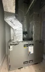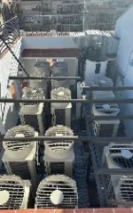 The building's installations include a new electrical and telecommunications supply to each floor's panels for subsequent distribution by the tenant. A ventilation system with Swegon heat recovery units is installed in common and private areas, along with a Mitsubishi heating/cooling system using a gas/water system, anticipating adaptability to future office divisions. A BMS control system for HVAC and ventilation, as well as a Dalí system for lighting, is applied throughout the building. The fire sprinkler and hose installations are renewed, along with basic access control, CCTV, solar panels, access turnstiles, etc. Additionally, two new elevator blocks are installed. The former porter's residence on the rooftop has been transformed into a climate and hot water supply room, removing the roof slab to allow necessary ventilation.