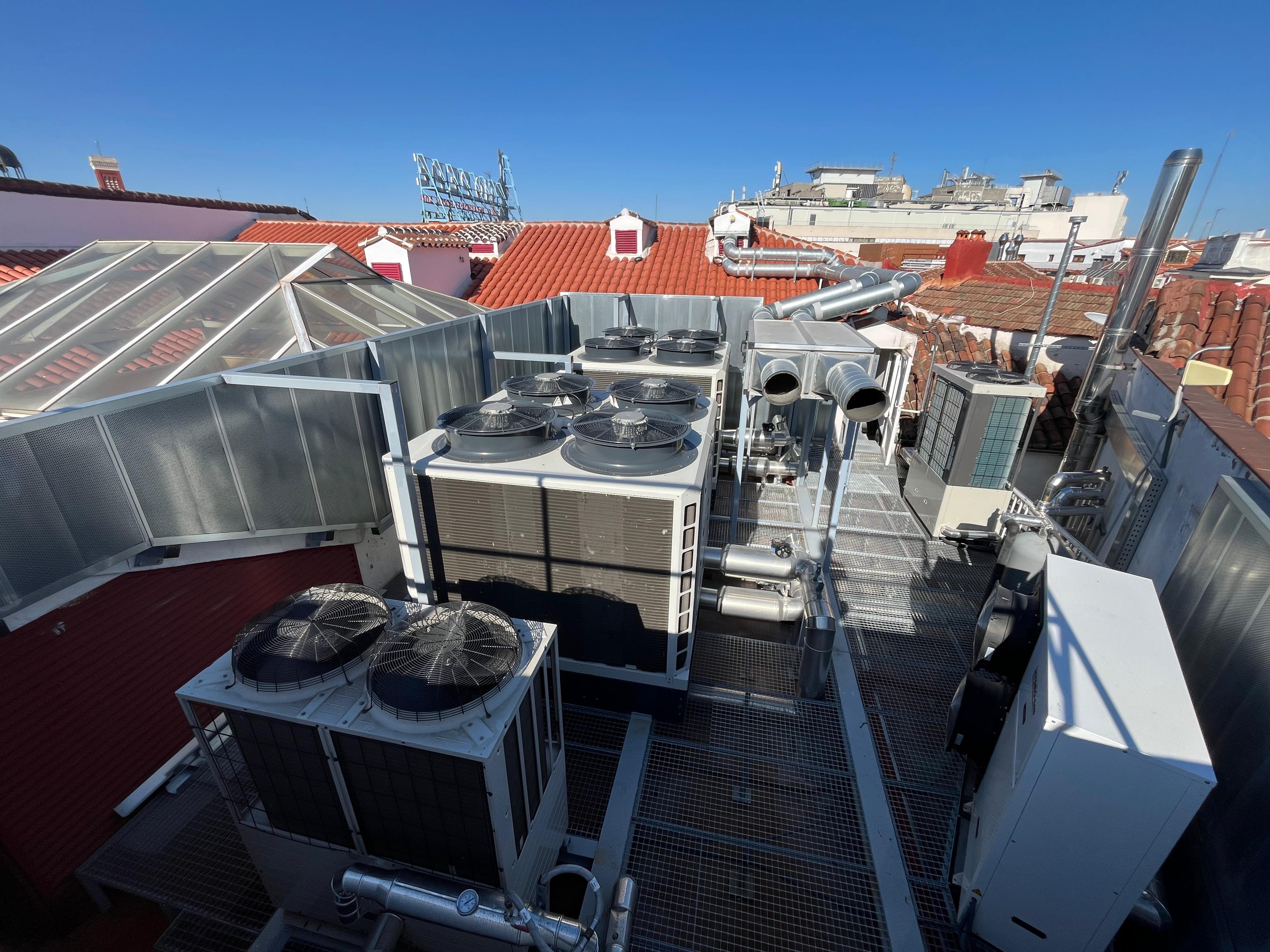 Sustitución de las enfriadoras existentes por dos nuevas bombas de calor agua/aire con refrigerante ecológico (PCA<750), responsables de la climatización del edificio.