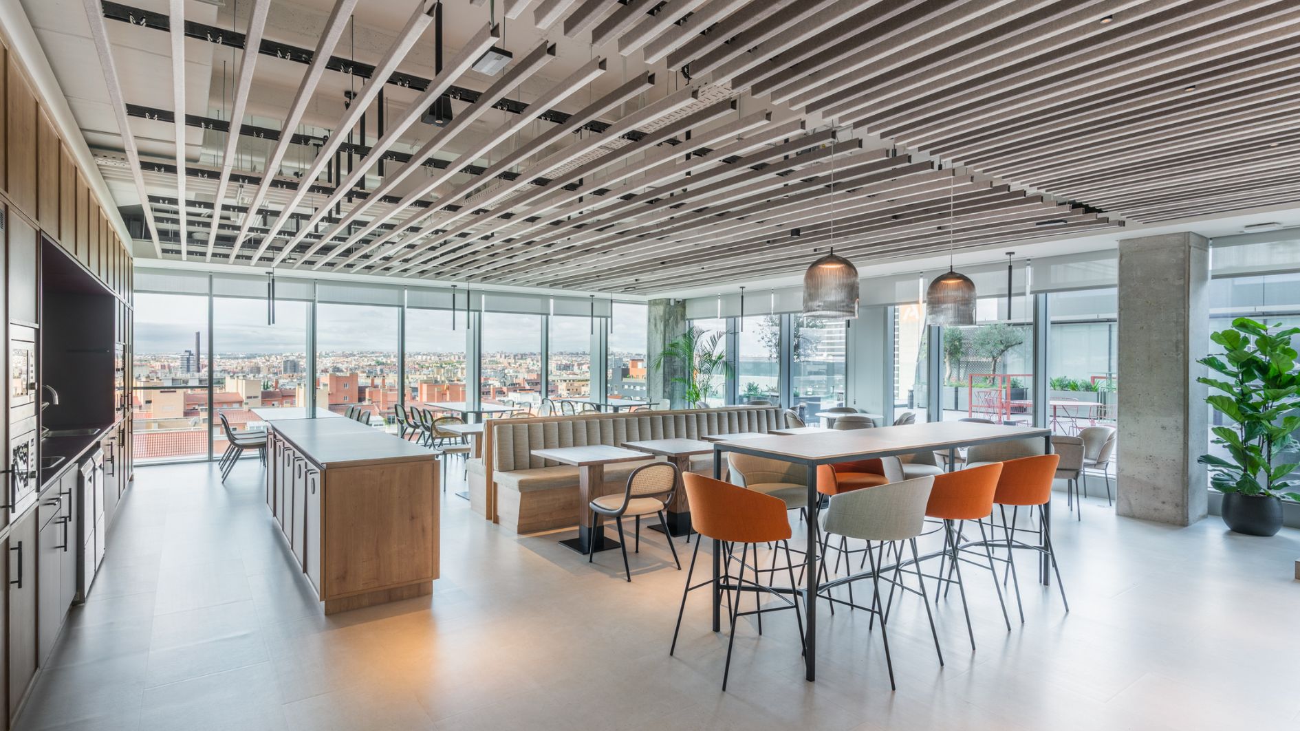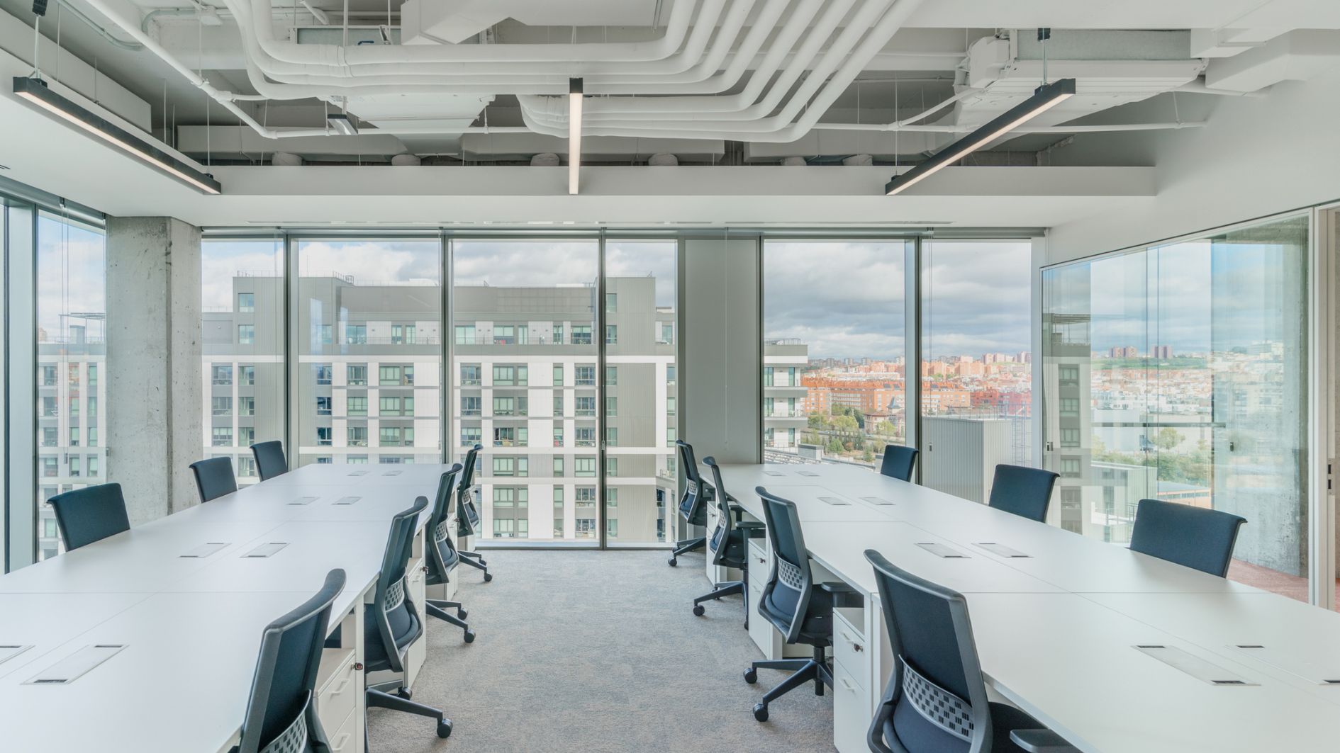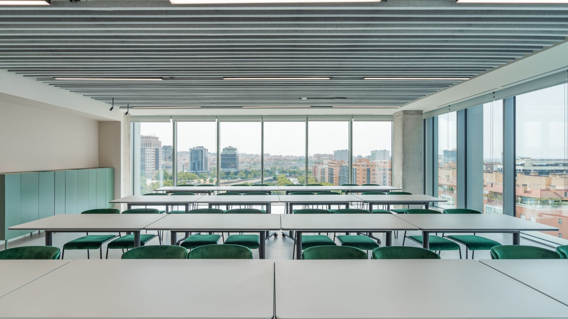 El espacio lo complementan una terraza con vistas a la ciudad y una sala polivalente, perfecta para formaciones y encuentros corporativos, que se suman a las zonas verdes y áreas comunes del complejo.